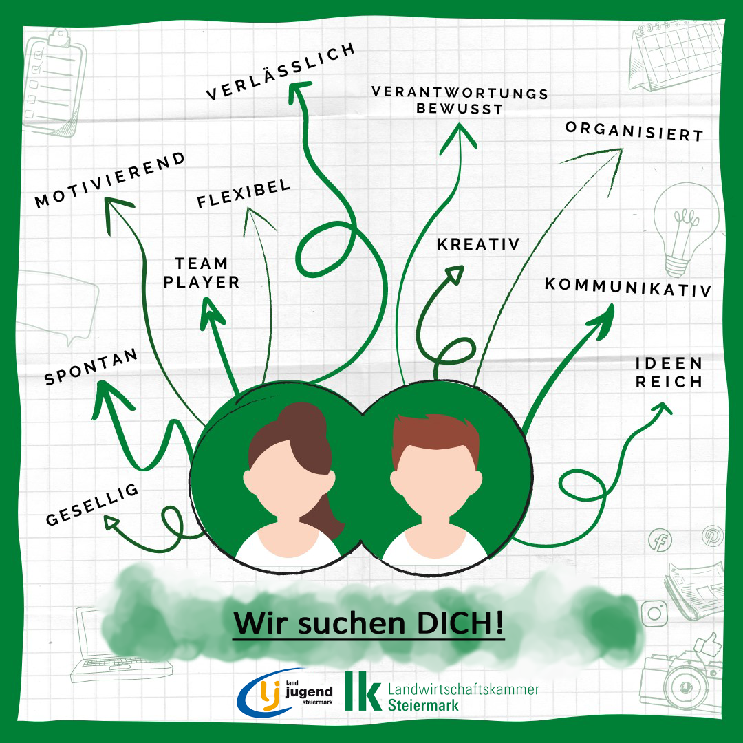 Dann schick deine Bewerbung gleich unter personal@lk-stmk.at ins Personalbüro der Landwirtschaftskammer Steiermark!